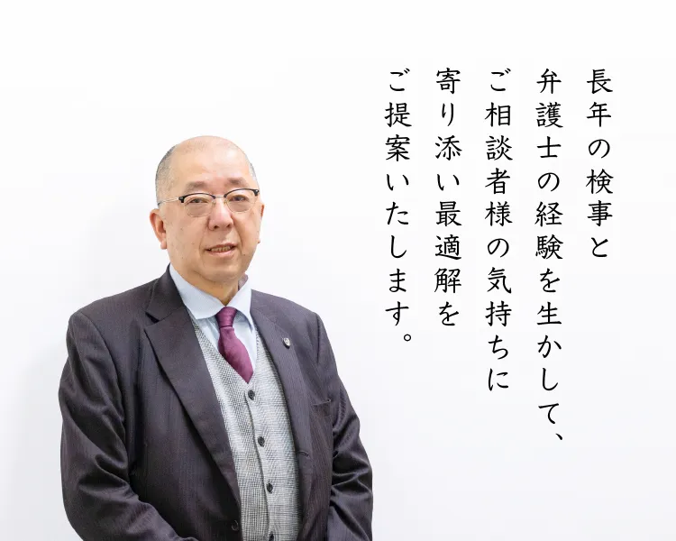 長年検事をしてきましたので刑事事件関係や、数多く案件を経験してきた不動産・建設関係に関して特に得意な分野としております。